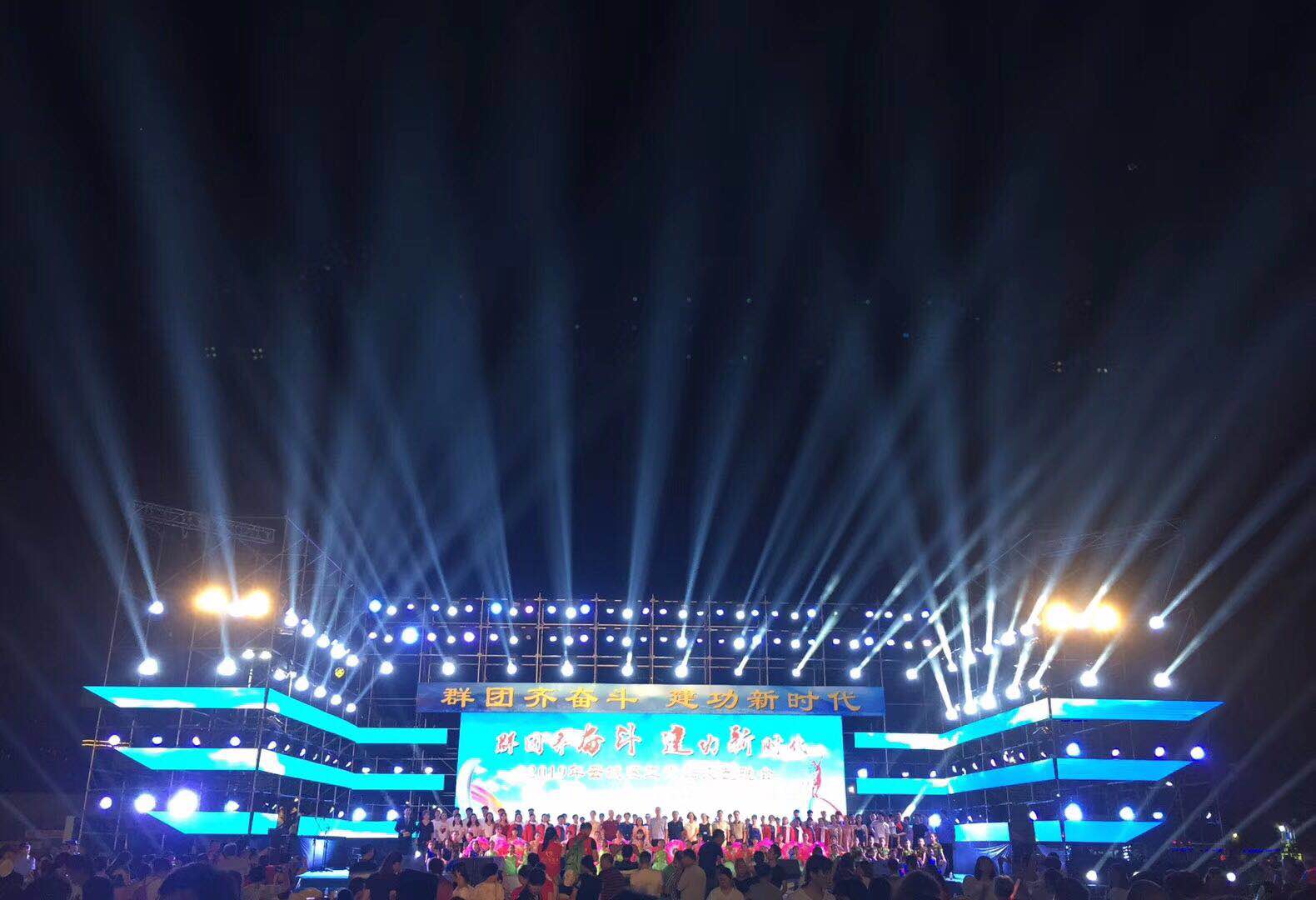 通常在舞臺(tái)后區(qū)做一面燈光墻,面向觀眾置于演員表演區(qū)后面。地面可以設(shè)置搖頭光束燈、大功率激光燈,以一定的仰角面向觀眾席后上方投射光束,也可用窄光束AC筒燈向舞臺(tái)兩側(cè)前方投射光束,并做跑燈變化。燈墻的燈具可以選擇窄光束LED投光換色燈向舞臺(tái)表演區(qū)正投,或使用窄光束LED投光換色燈在燈光墻里面向舞臺(tái)兩側(cè)投射,產(chǎn)生具有沖擊力的舞臺(tái)視覺(jué)效果。